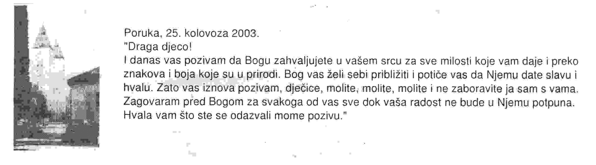 Message of August 25th 2003 from the Queen of Peace